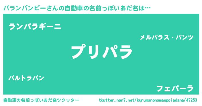 | 男性向けラノベタイトル風あだ名 | 『パランパンピーの憂鬱』 |