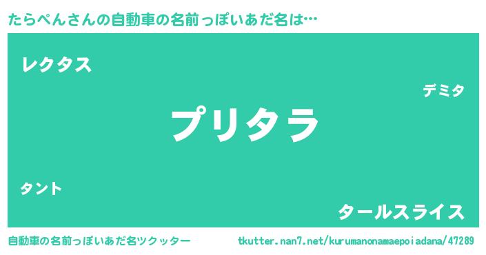 | 男性向けラノベタイトル風あだ名 | 『たらぺんの憂鬱』 |