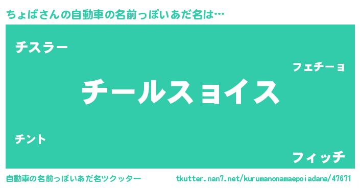 | 男性向けラノベタイトル風あだ名 | 『チョバスレイヤー』 |