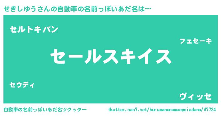 | 男性向けラノベタイトル風あだ名 | 『せきしゆう~年齢イコール彼女いない歴の魔法使い~』 |