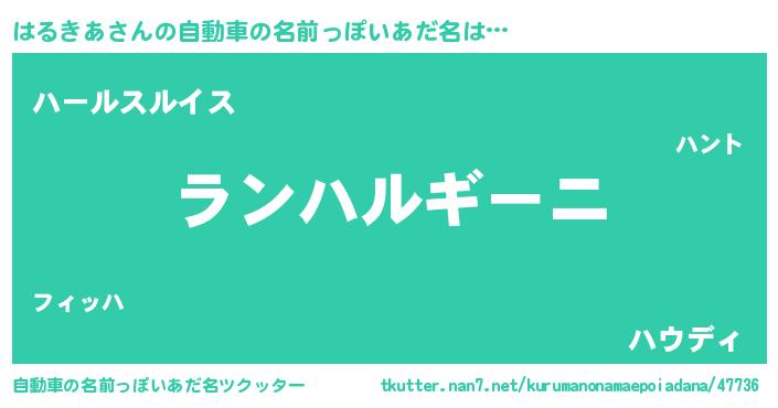 | 欧米人風あだ名 | 『アンジェラ・はるきあ』 |