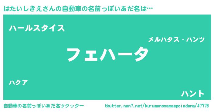 | ヒーロー風カッコイイあだ名 | 『天弓騎士ハタ』『最強戦士ハタイシキエ』 |