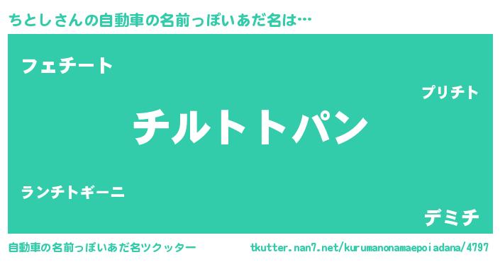 | 胡散臭い通販商品みたいなあだ名 | 『信頼と実績のサプリメント…その名も「ちとし」』 |