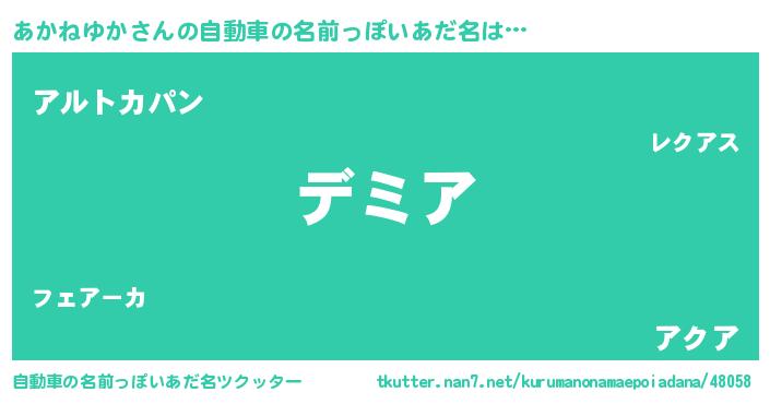 | 男性向けラノベタイトル風あだ名 | 『あかねゆかという概念が存在しない退屈な世界 』 |