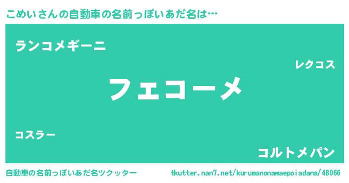 | 意味不明あだ名 | 『とにかく怪しいこめい』『自称こめい』 |