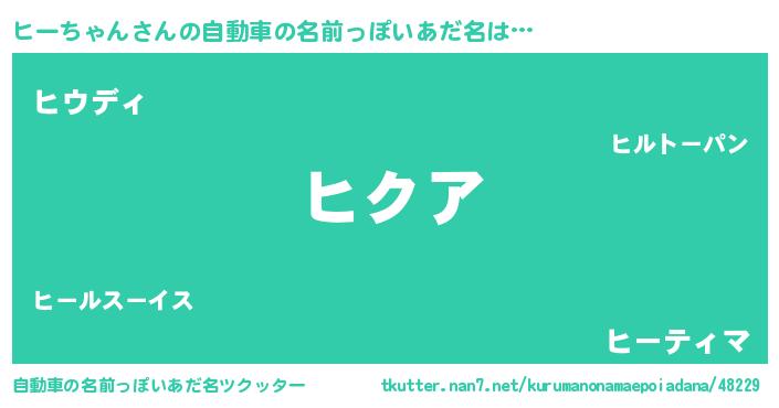 | 女子向けラノベタイトル風あだ名 | 『ヒーちゃんの雑貨屋さん』 |