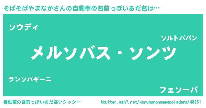 | 男性向けラノベタイトル風あだ名 | 『Re:そばそばやまなかから始める異世界生活』 |