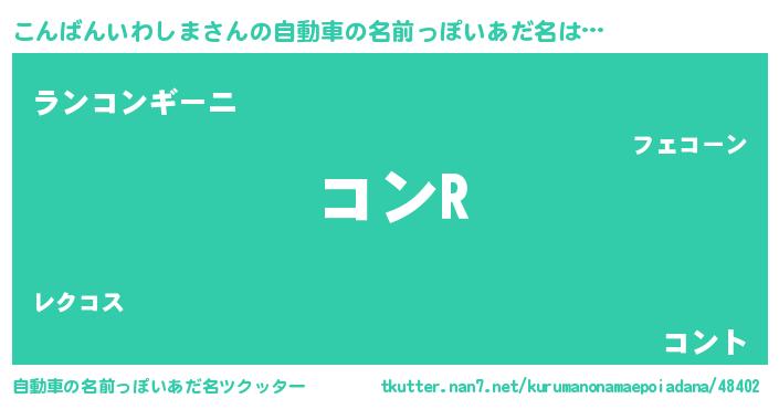 | 女子向けラノベタイトル風あだ名 | 『死神こんばんいわしまの再婚』 |