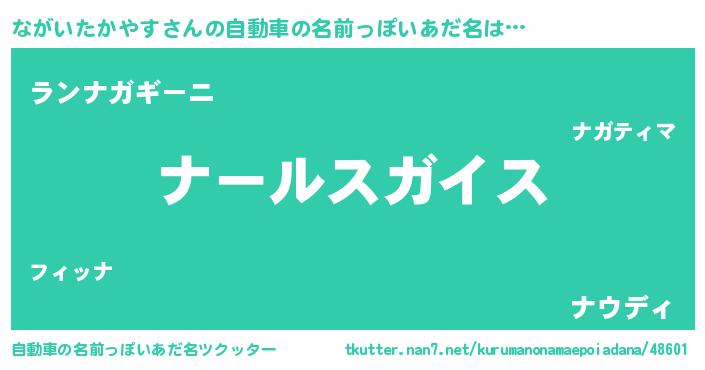 | 男性向けラノベタイトル風あだ名 | 『転生したらながいたかやすだった件』 |