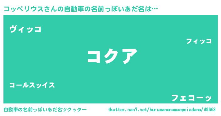 | 欧米人風あだ名 | 『コッペリウスクリステル』 |