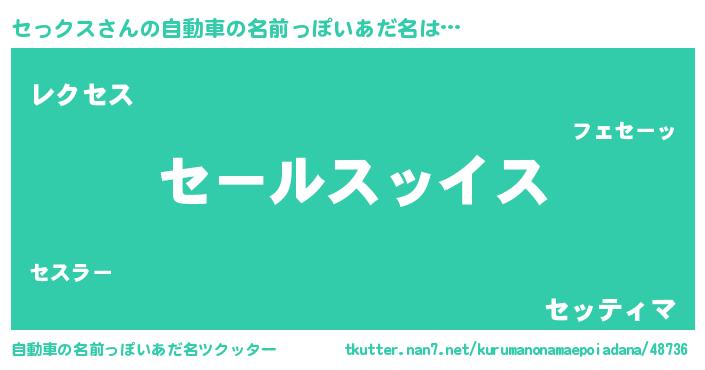 | 男性向けラノベタイトル風あだ名 | 『セっクス~年齢イコール彼女いない歴の魔法使い~』 |