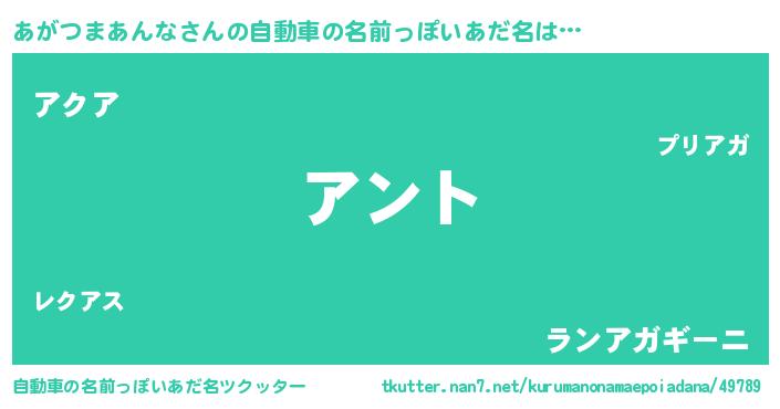 | 意味不明あだ名 | 『とにかく怪しいあがつまあんな』 |