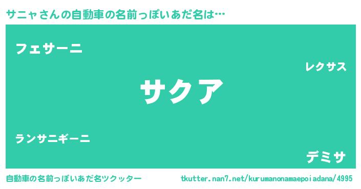 | 女子向けラノベタイトル風あだ名 | 『サニャの雑貨屋さん』 |