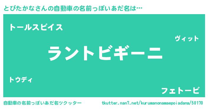 | 胡散臭い通販商品みたいなあだ名 | 『来世でも幸せになれる水素水…その名も「とびたかな」』 |