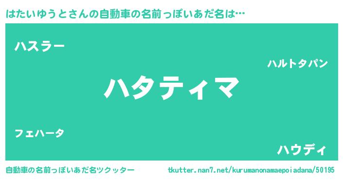 はたいゆうとさんの自動車の名前っぽいあだ名をツクッター!