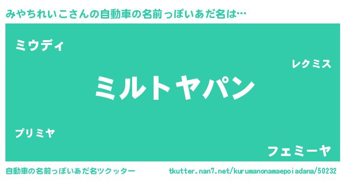 | 意味不明あだ名 | 『とにかく怪しいみやちれいこ』 |