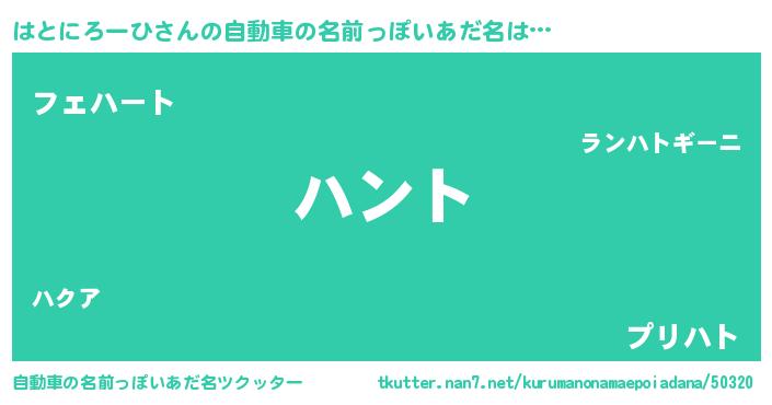 | 男性向けラノベタイトル風あだ名 | 『はとにろーひの嫁は女の子じゃないと思った?』 |