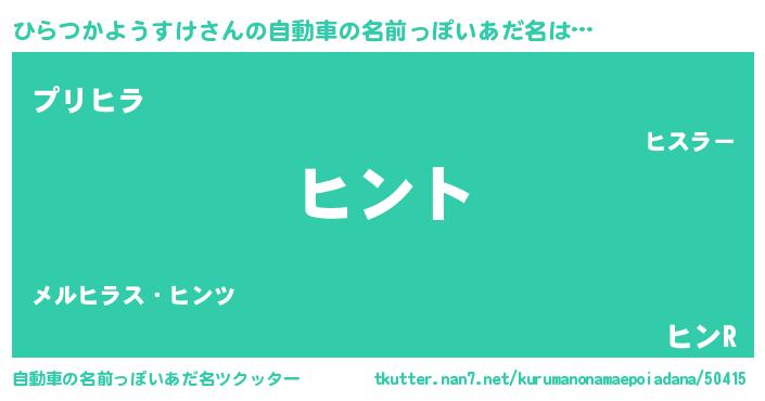 | ポケモン風あだ名 | 『ヒヒラツカヨウスケ』『ヒラチュウ』 |