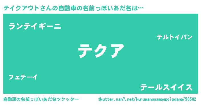 | 意味不明あだ名 | 『テイクアウトフォーエバー』 |