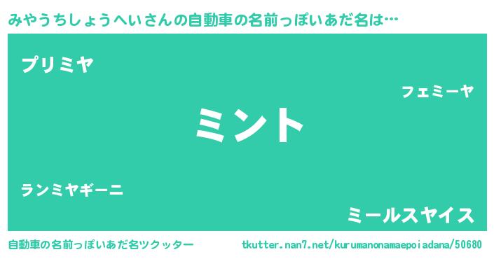 | 男性向けラノベタイトル風あだ名 | 『みやうちしょうへいの嫁は女の子じゃないと思った?』 |