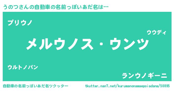 | 男性向けラノベタイトル風あだ名 | 『Re:うのつから始める異世界生活』 |