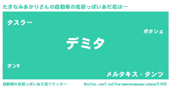 | 胡散臭い通販商品みたいなあだ名 | 『絶対に幸福をもたらす水素水…その名も「たきなみあかり」』 |