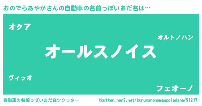 | 欧米人風あだ名 | 『トリンドルおのでらあやか』 |
