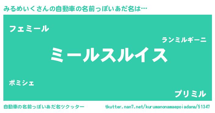 | 胡散臭い通販商品みたいなあだ名 | 『億万長者になれる霊験あらたかなお札…その名も「みるめいく」』 |