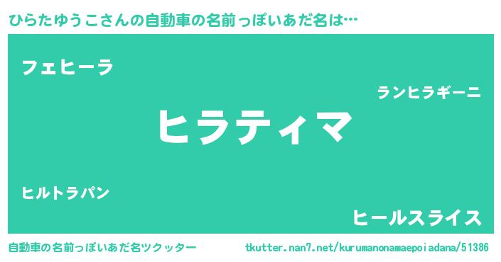 | 胡散臭い通販商品みたいなあだ名 | 『億万長者になれるブレスレット…その名も「ひらたゆうこ」』 |