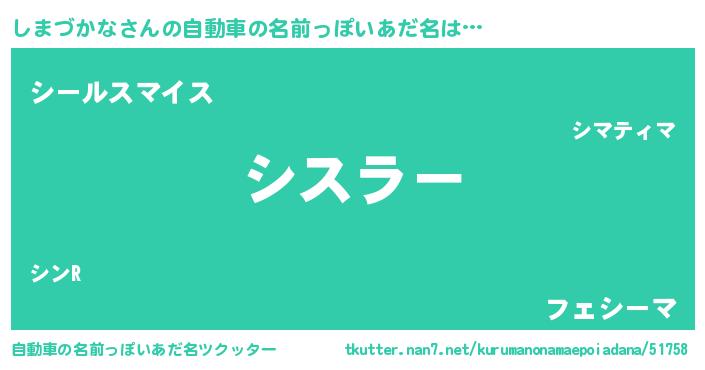 | 意味不明あだ名 | 『しまづかなフォーエバー』 |