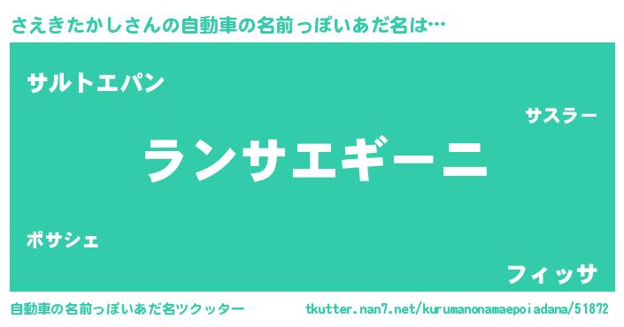 | 男性向けラノベタイトル風あだ名 | 『さえきたかしに滅ぼされるだけの簡単なお仕事です』 |