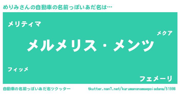| 男性向けラノベタイトル風あだ名 | 『Re:めりみから始める異世界生活』 |