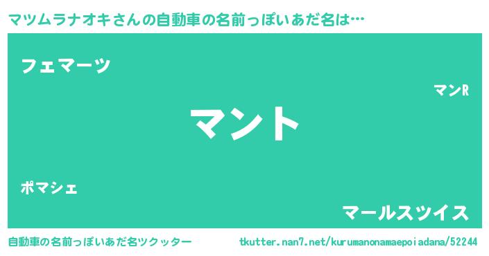 | ヒーロー風カッコイイあだ名 | 『幻影騎士マツ』『仮面マツダー』 |