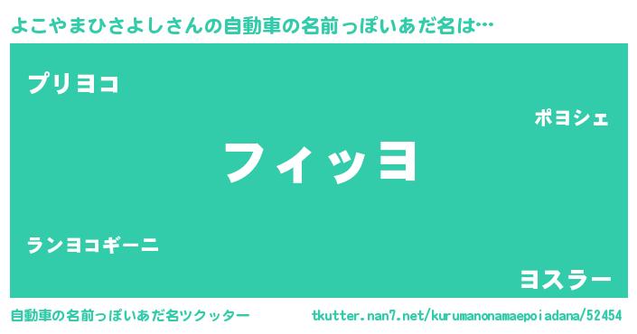 | 男性向けラノベタイトル風あだ名 | 『おまえをオタクにしてやるから、俺をよこやまひさよしにしてくれ! 』 |