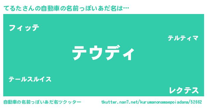 | 男性向けラノベタイトル風あだ名 | 『魔弾の王とてるた』『テルタスレイヤー』 |