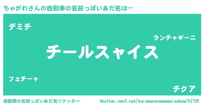 | 胡散臭い通販商品みたいなあだ名 | 『絶対に幸福をもたらす健康食品…その名も「ちゃがわ」』 |