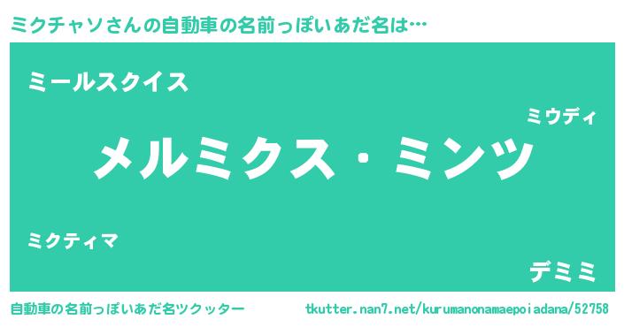| 意味不明あだ名 | 『自称ミクチャソ』『永久保存ミクチャソ』 |