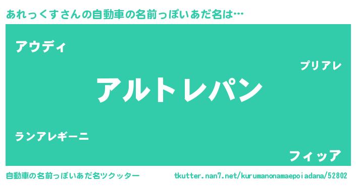 | 意味不明あだ名 | 『とにかく怪しいあれっくす』 |