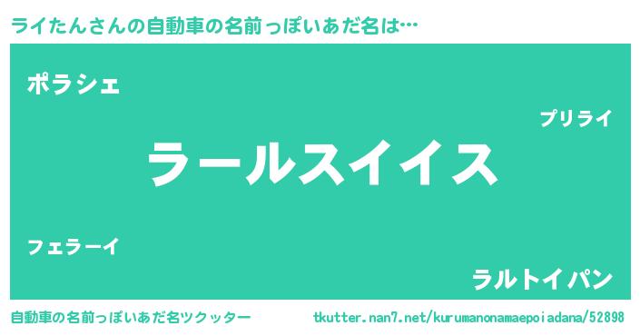 | 男性向けラノベタイトル風あだ名 | 『転生したらライたんだった件』 |