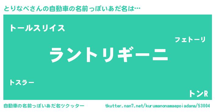 とりなべさんの自動車の名前っぽいあだ名をツクッター!