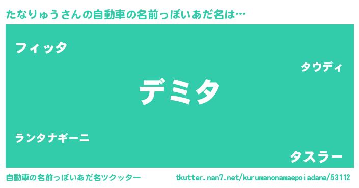| 男性向けラノベタイトル風あだ名 | 『たなりゅうという概念が存在しない退屈な世界 』 |