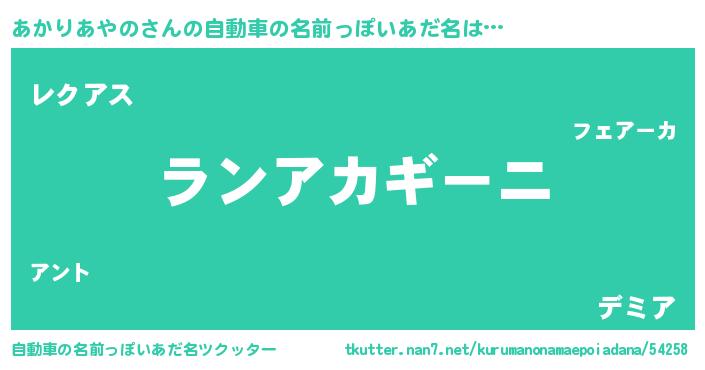 | 意味不明あだ名 | 『自称あかりあやの』 |