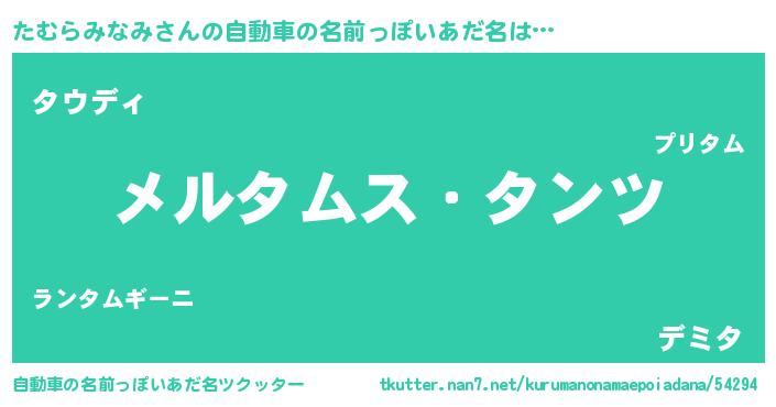 | 男性向けラノベタイトル風あだ名 | 『Re:たむらみなみから始める異世界生活』 |