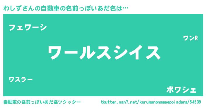 | 男性向けラノベタイトル風あだ名 | 『転生したらわしずだった件』 |