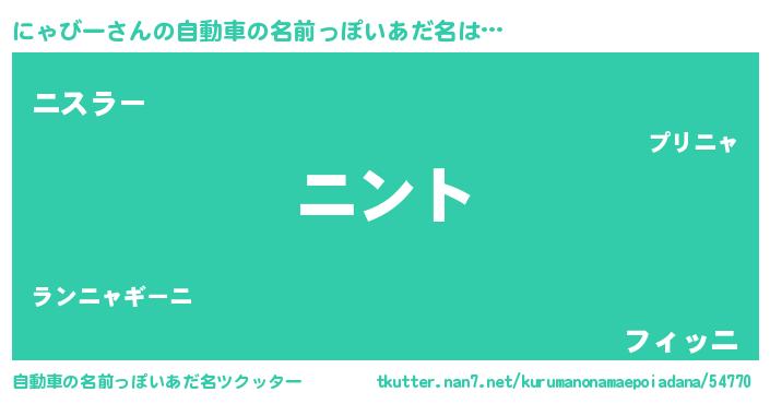 | 男性向けラノベタイトル風あだ名 | 『にゃびーの嫁は女の子じゃないと思った?』 |