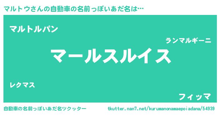 | 男性向けラノベタイトル風あだ名 | 『転生したらマルトウだった件』 |