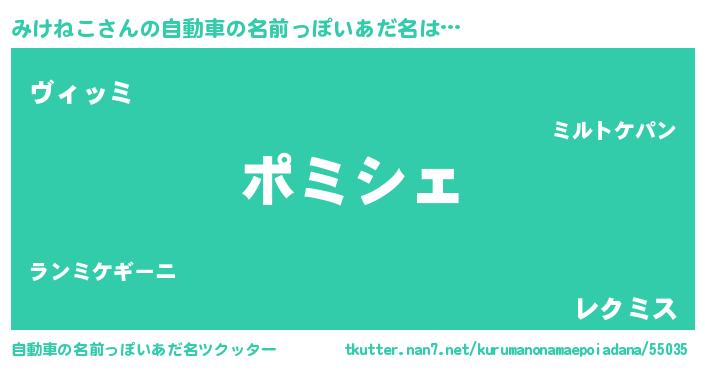 みけねこさんの自動車の名前っぽいあだ名をツクッター!