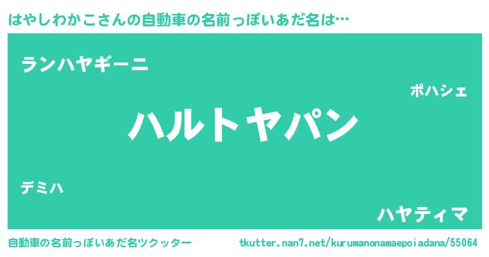 | 欧米人風あだ名 | 『ウサインはやしわかこ』 |