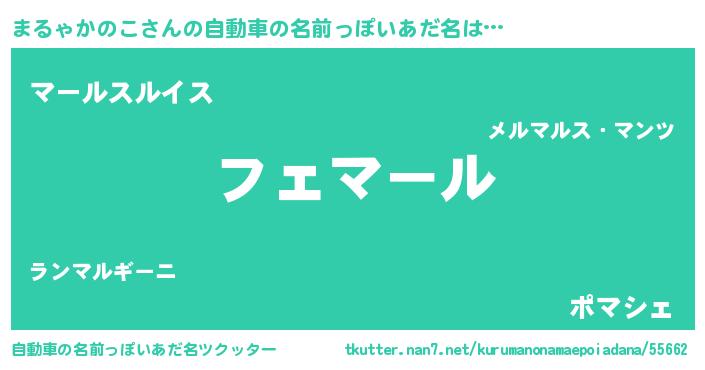 | 欧米人風あだ名 | 『まるゃかのこ・ステッグマイヤー』 |