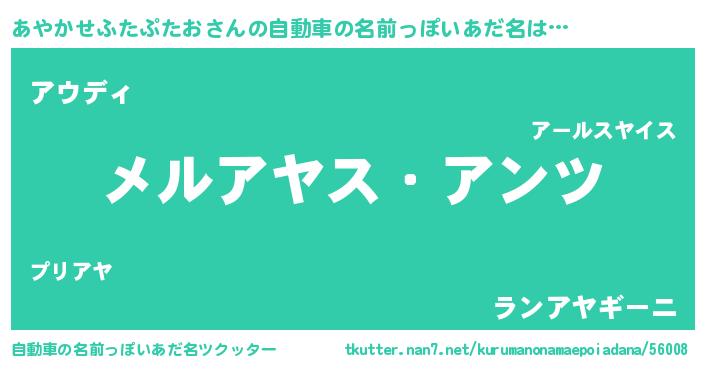 | 胡散臭い通販商品みたいなあだ名 | 『テレビで話題のアガリクス…その名も「あやかせふたぷたお」』 |